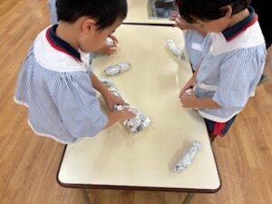 どのクラスも新聞紙とアルミホイルを巻いて準備万端!!