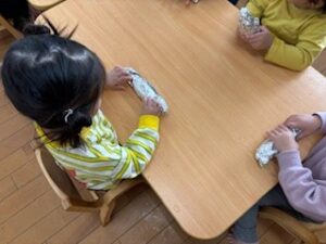 みんなが大好きな焼き芋・・・おやつの時間にペロリと食べていましたよ。