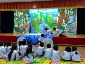 練習ではいろんなクラスでお客さんをしたりと劇の見せ合いっこをしました。