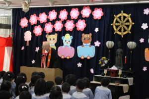 みんなで甘茶をかけてお祝いしました。