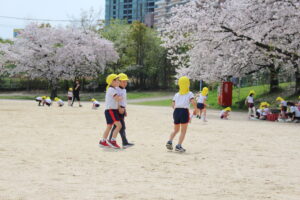 ゆり組(5歳児クラス)が近くの公園にお花見に行きました。