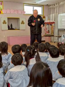 理事長先生がけん玉を披露してくれました。